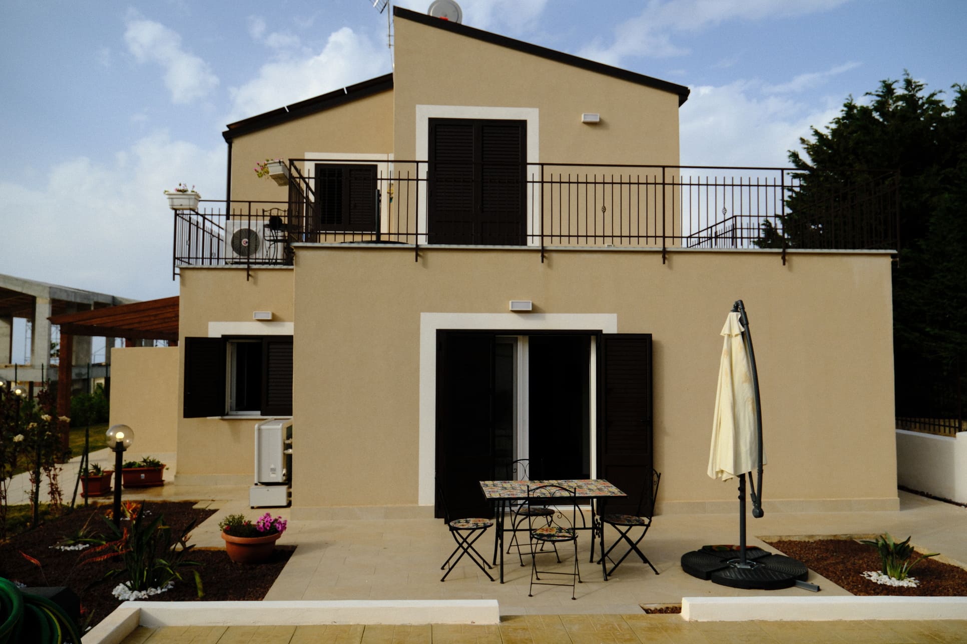 In einer Anlage mit insgesamt 3 Wohnhäusern, maximal immer mit 2 Wohneinheiten. Zur Anlage gehört ein großer Pool, der ab dem 15. Juni genutzt werden kann.