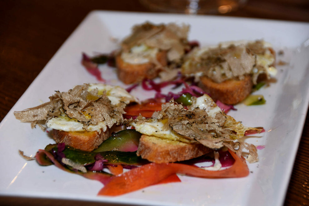 Egal, ob Bruschetta mit Nduja, gebratenes Gemüse Julienne mit Burrata, knackig ausgebackenes, frisches Gemüse (Art Tempura), Rosmarin, Kartoffeln mit Filet vom Schwein, Hähnchenkeule mit einer krokanten Currypanade, Bruschetta mit Wachteleier und Trüffel oder Rindertartar mit Zitrusfrüchten Kapernäpfel. Es war einfach super fein und lecker und hat die guten Weine perfekt harmonieren lassen.