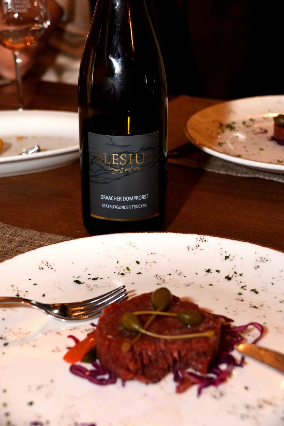 Das Menü ist gespickt mit sehr genialen Gerichten, dazu die hervorragenden Weine, da kann man absolut sagen, hier geht es sich, kulinarisch und weintechnisch auszuleben. Oben im ersten Stock, dort wo die Weine gelagert sind, empfehle ich den Weinliebhabern einen Blick zu investieren.